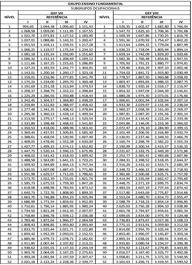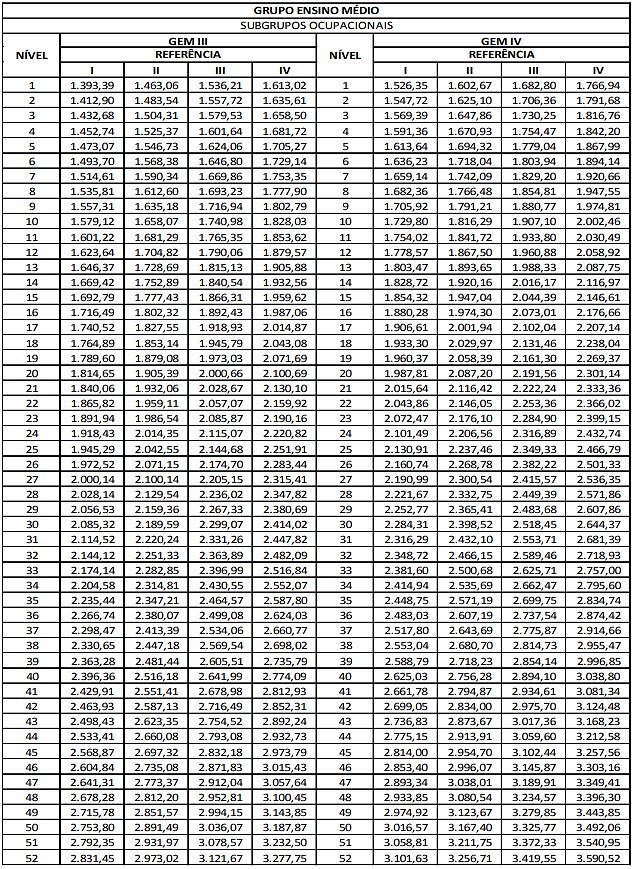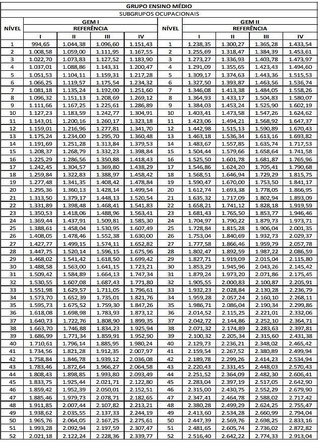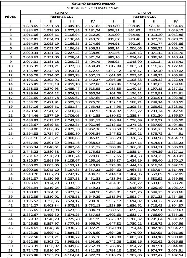 Progressão: o servidor aprovado em estágio probatório avançará automaticamente um nível na tabela salarial.