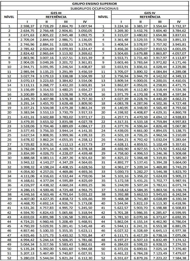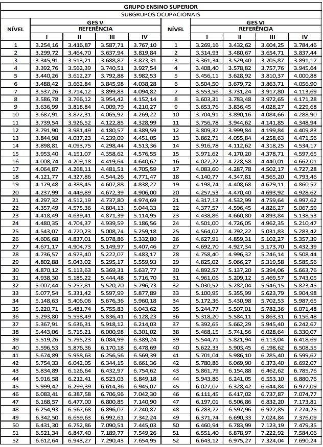 CARREIRA: é a evolução funcional e de vencimentos na tabela, correspondente à possibilidade de desenvolvimento e valorização individual do servidor, orientada pelas necessidades institucionais, habilitação concluída e desempenho na função;