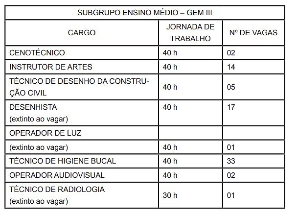 | CARGO | JORNADA DE TRABALHO | Nº DE VAGAS |